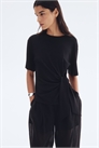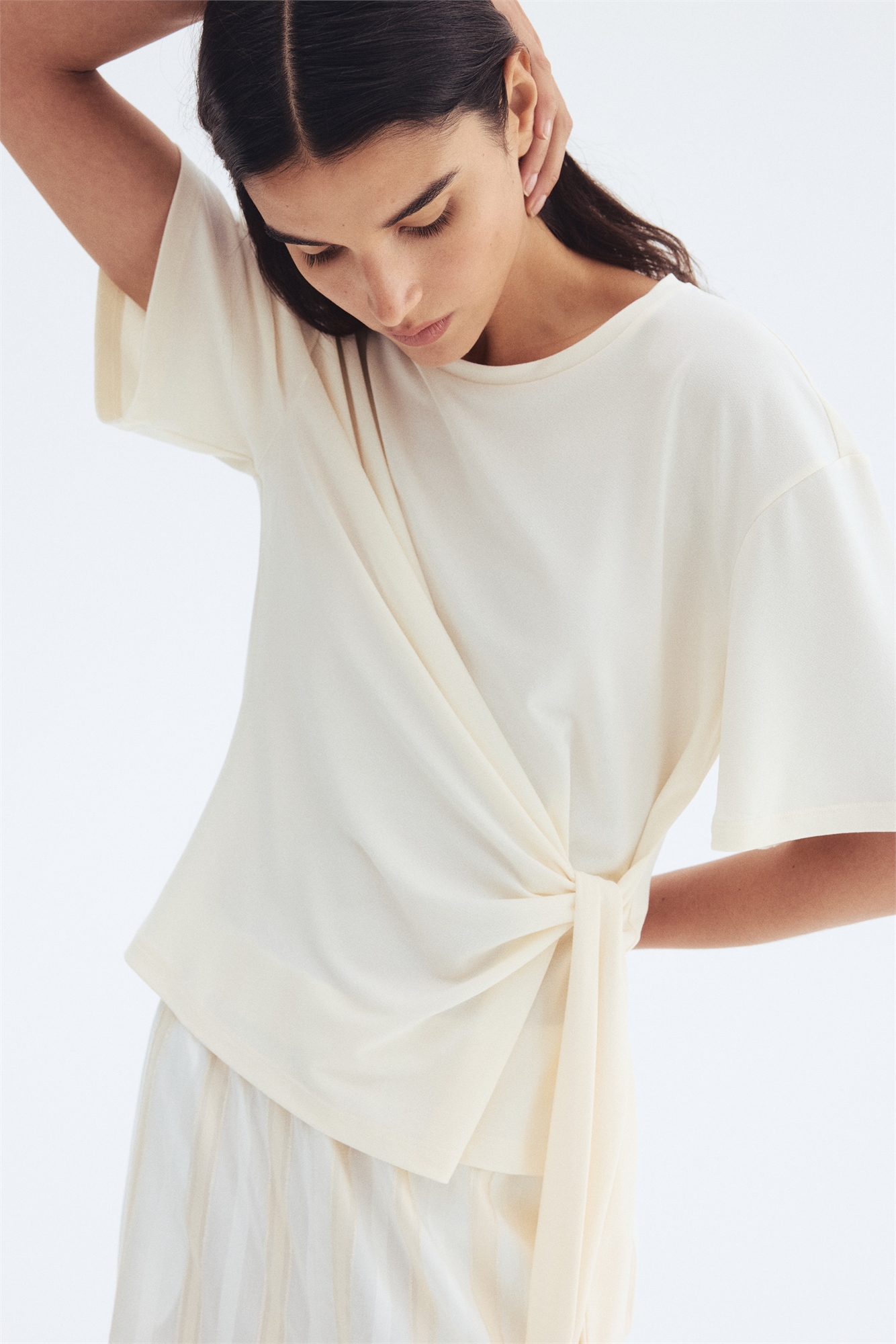 Топ из мягкого джерси с горловиной, рукавами длиной до локтя и широкими завязками на талии с одной стороны.