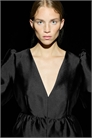 Блузка из тканого материала с легким блеском, с глубоким V-образным вырезом и потайными застежками-крючками спереди. Рукава-баллоны длиной до локтя и расклешенный пеплум.