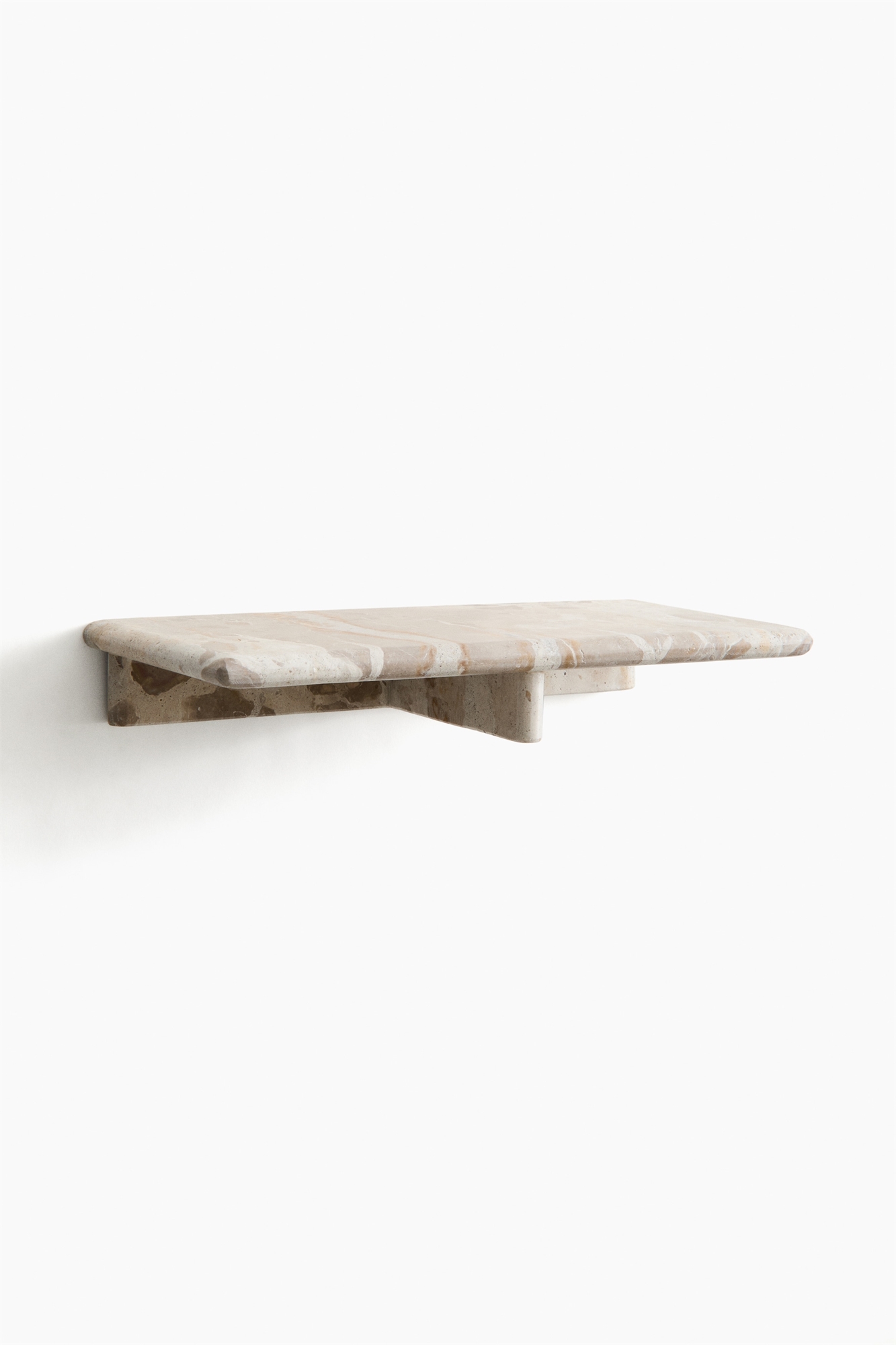 Стильная прямоугольная настенная полка из мрамора. Незаметное крепление с помощью винтовых отверстий сзади. Винты в комплект не входят. Поскольку мрамор является натуральным материалом, цвет и фактура каждого изделия могут отличаться.