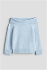 Джемпер на плечах из мягкого трикотажа с широкой ребристой складкой в верхней части и длинными рукавами. Ребристые манжеты и подол.