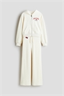 Комплект из толстовки на молнии и джоггеров из мягкого велюра с мелкими узорами. Толстовка с длинными рукавами, застежкой на молнию спереди, накладными карманами спереди и окантовкой на манжетах и подоле. Джоггеры с эластичной тесьмой и утягивающим шнурком на талии. Прямые ноги.