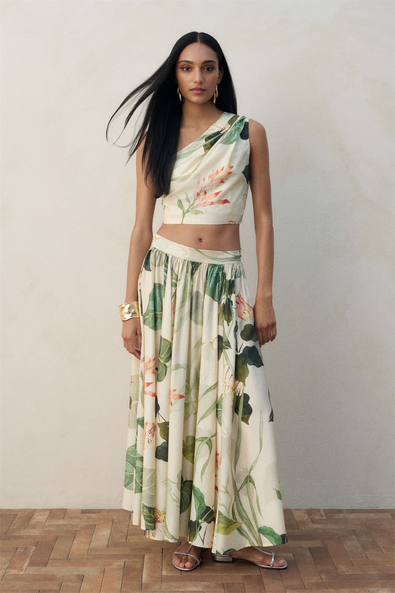 Круглая юбка-макси из тканого материала с высокой талией и потайной застежкой на молнию и крючок с глазом с одной стороны.