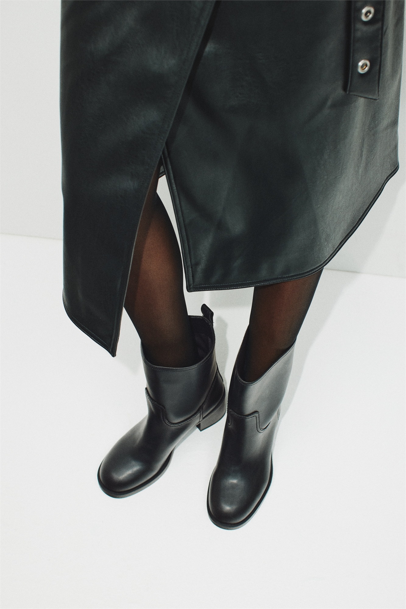 Ботинки на блочном каблуке с закругленными носками и петлей сзади. Подкладка и стелька из джерси.