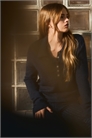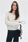 Облегающий джемпер из мягкого трикотажа с добавлением шерсти с воротником, застежкой на пуговицы и длинными рукавами. Манжеты и подол отделаны тесемками.
