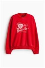 Топ из легкого толстовочного материала с деталями из мотивов спереди. Круглый вырез с ребристой отделкой, спущенные плечи и длинные рукава. Ребристые манжеты и подол.