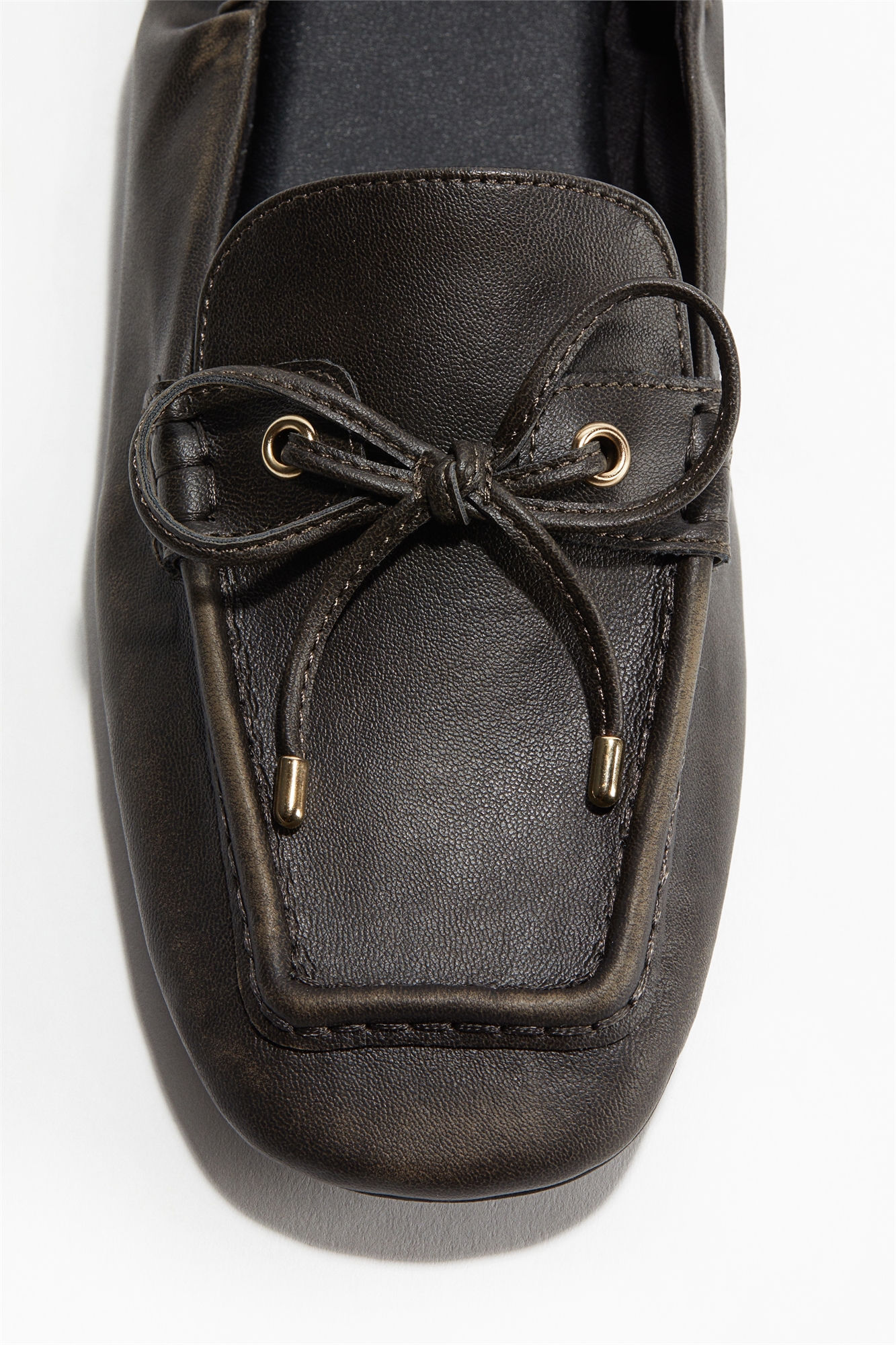 Лоферы из ткани с покрытием, квадратный шов мокасин и шнуровка спереди. Эластичная резинка сзади для удобства надевания и снятия. Подкладка из джерси.