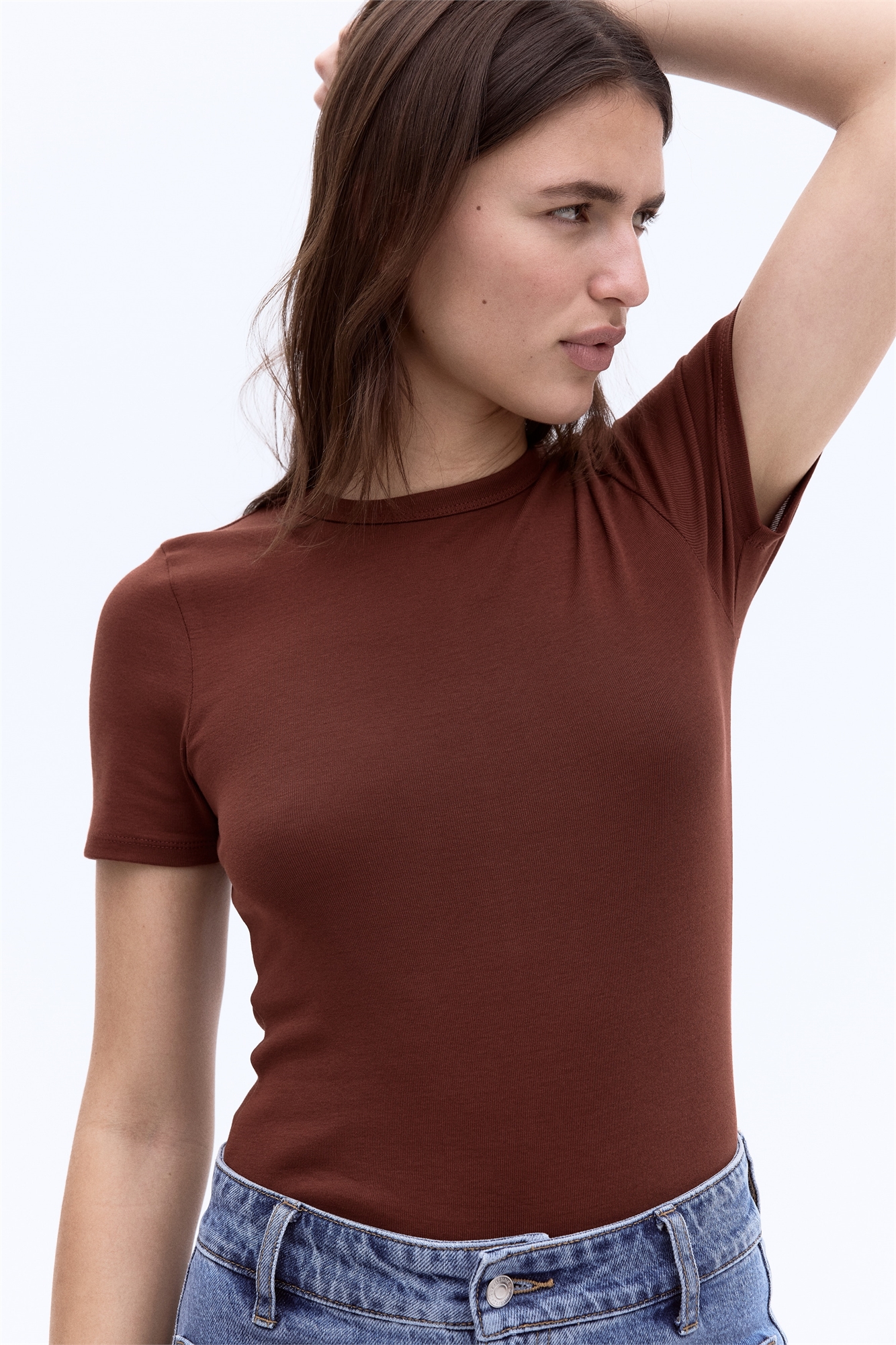 Облегающая футболка из мягкого хлопкового джерси с горловиной и видимым швом по спине.