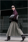 Свободная юбка длиной до колен из плиссированного полотна с высокой талией и потайной застежкой на молнию и крючок с ушком с одной стороны. Оверлочный край по подолу. Без отделки.