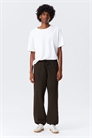 Классические треники сшиты из мягкого хлопкового флиса. Эластичный пояс с завязками, карманы в боковых швах, накладной задний карман и эластичные манжеты.
