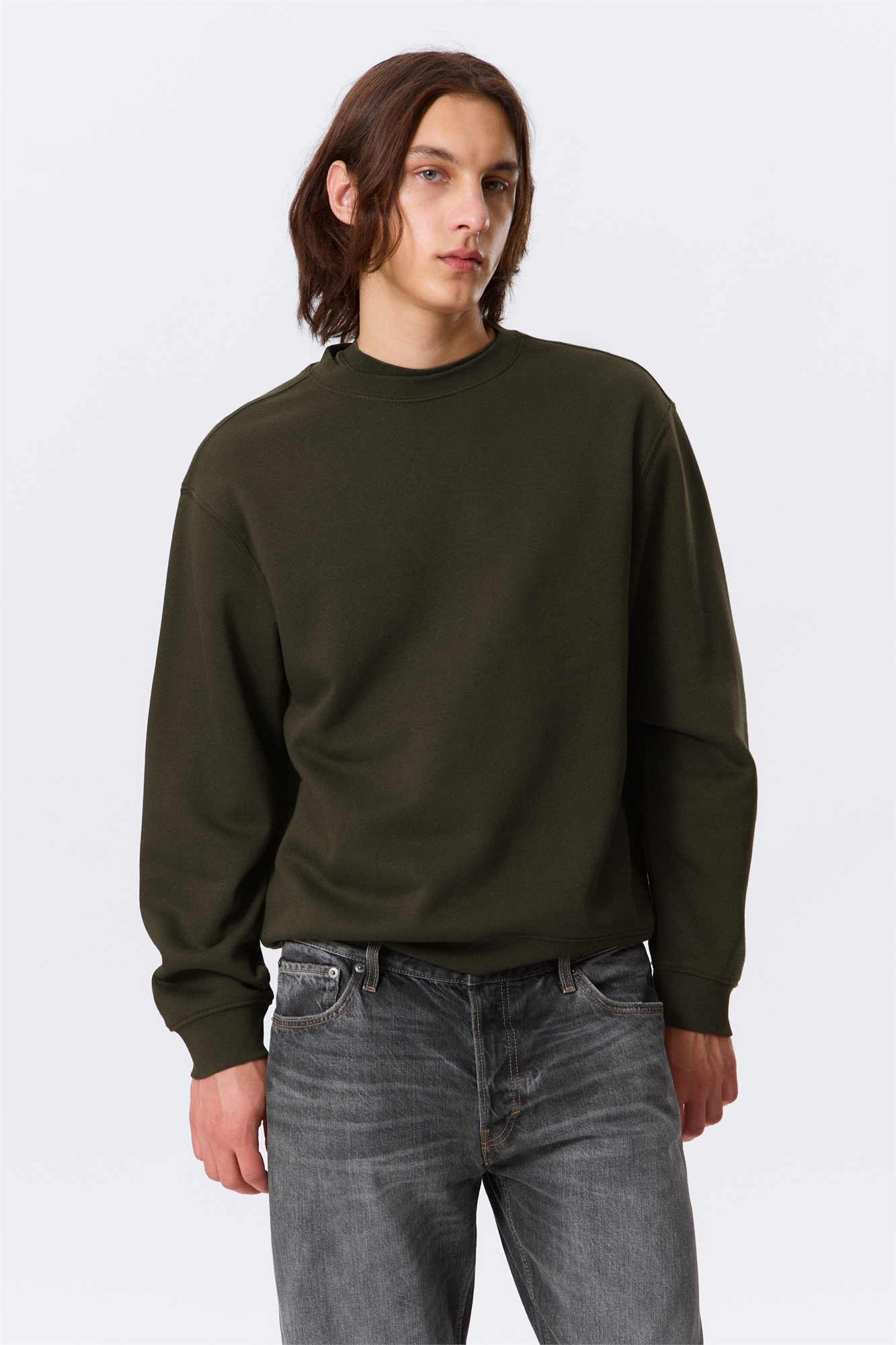 Классическая толстовка из мягкого хлопкового флиса. Модель имеет обычную посадку и слегка спущенные плечи, а также ребристую отделку по вырезу горловины, манжетам и подолу.