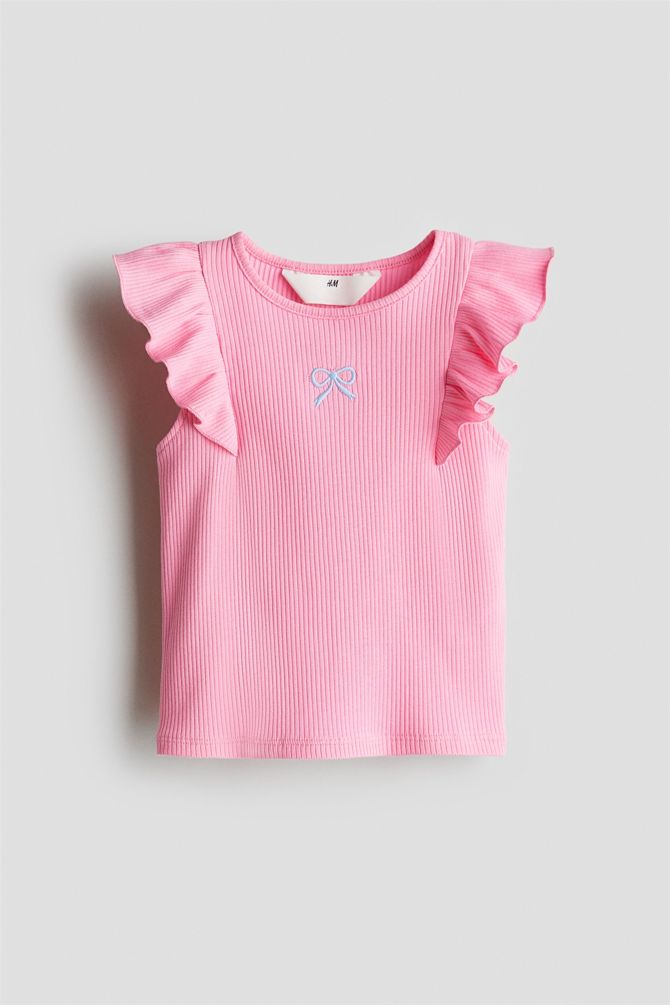 Жилет-топ из ребристого хлопкового джерси с вышитым мотивом спереди, круглым вырезом и широкими бретелями с оборками.