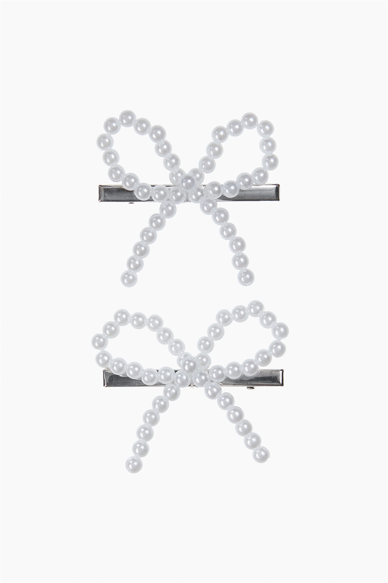 Металлические заколки для волос, украшенные бантом из блестящих бусин.