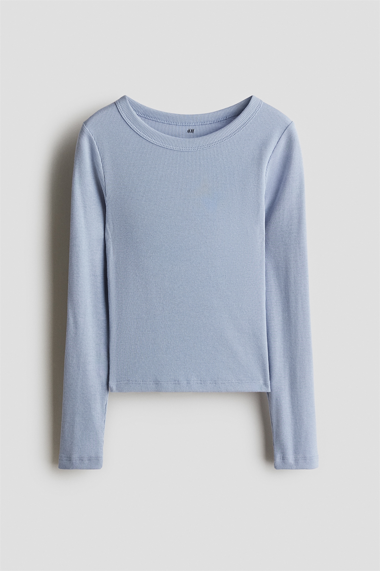 Топ с длинными рукавами из мягкого ребристого хлопкового джерси с круглым вырезом.