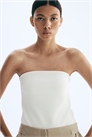 Боди-бандо из плотного трикотажа интерлок с оверлоком по краям проймы и потайными кнопками в промежности.