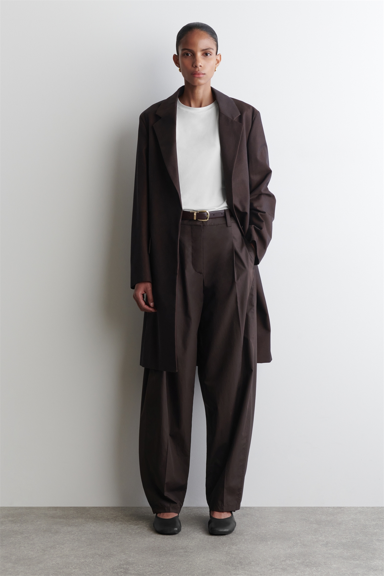 Плиссированные хлопковые брюки с бочкообразными штанинами