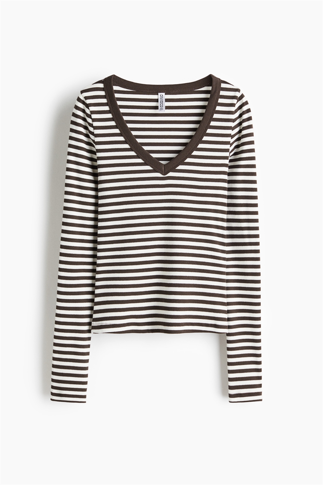 Облегающий топ из хлопкового джерси с глубоким V-образным вырезом, длинными рукавами и прямым покроем.