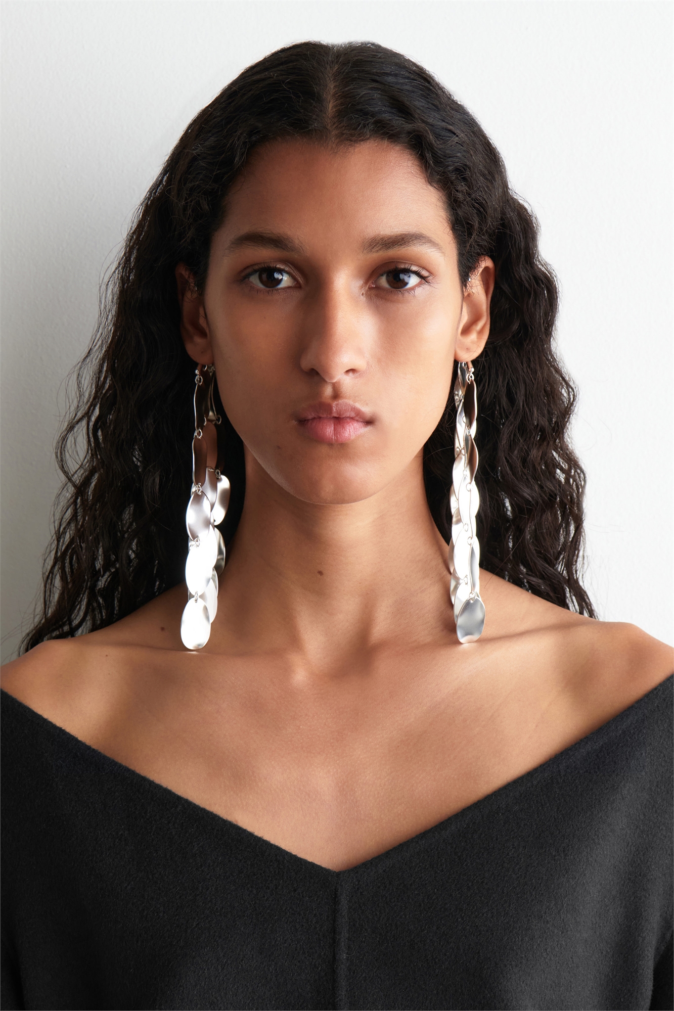 Autumn Winter 2025 поднимает современный гардероб на новую высоту: воплощение спокойной уверенности. Эти поразительные посеребренные манжеты для ушей, напоминающие о тонкой силе доспехов, соединены между собой неправильными овальными формами, которые каскадом спускаются к ключицам, а каждая деталь отполирована и мягко переливается на свету. Для максимального эффекта носите их с зачесанными назад волосами, а между ношениями храните в прилагаемой коробке. Латунь - универсальный материал, который может быть переработан множество раз без потери своих свойств Материал: 100% переработанная латунь. Покрытие: 100% серебро. Без учета отделки
