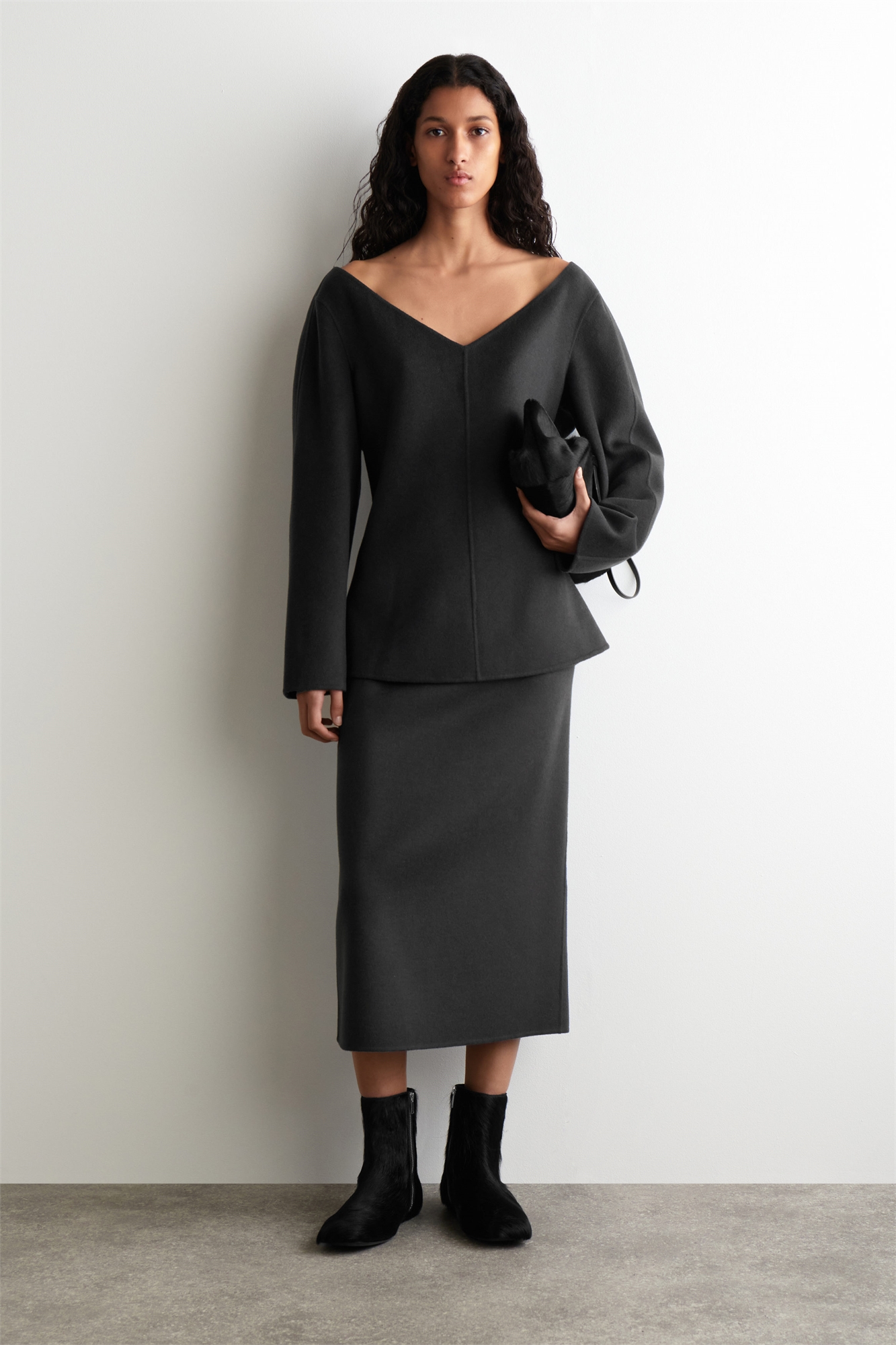Осень-зима 2025 поднимает современный гардероб на новую высоту: воплощение спокойной уверенности. Эти современные ботинки с носком, отличающиеся богатой тактильной чувствительностью, изготовлены из фактурной кожи пони и дублены в стойкий угольный оттенок. Они имеют тонкую форму с закругленными квадратными носками и низкий каблук, металлическую молнию и кожаную подошву. Застежка-молнияCOS поддерживает ответственное производство через Leather Working Group Верх, подкладка и подошва: 100% кожа. За исключением отделки