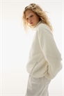 Куртка больших размеров из мягкого тедди с воротником-стойкой, застежкой-молнией спереди и боковыми карманами на молнии. Спущенные плечи, длинные рукава и завязки на подоле для регулировки посадки. Без подкладки.