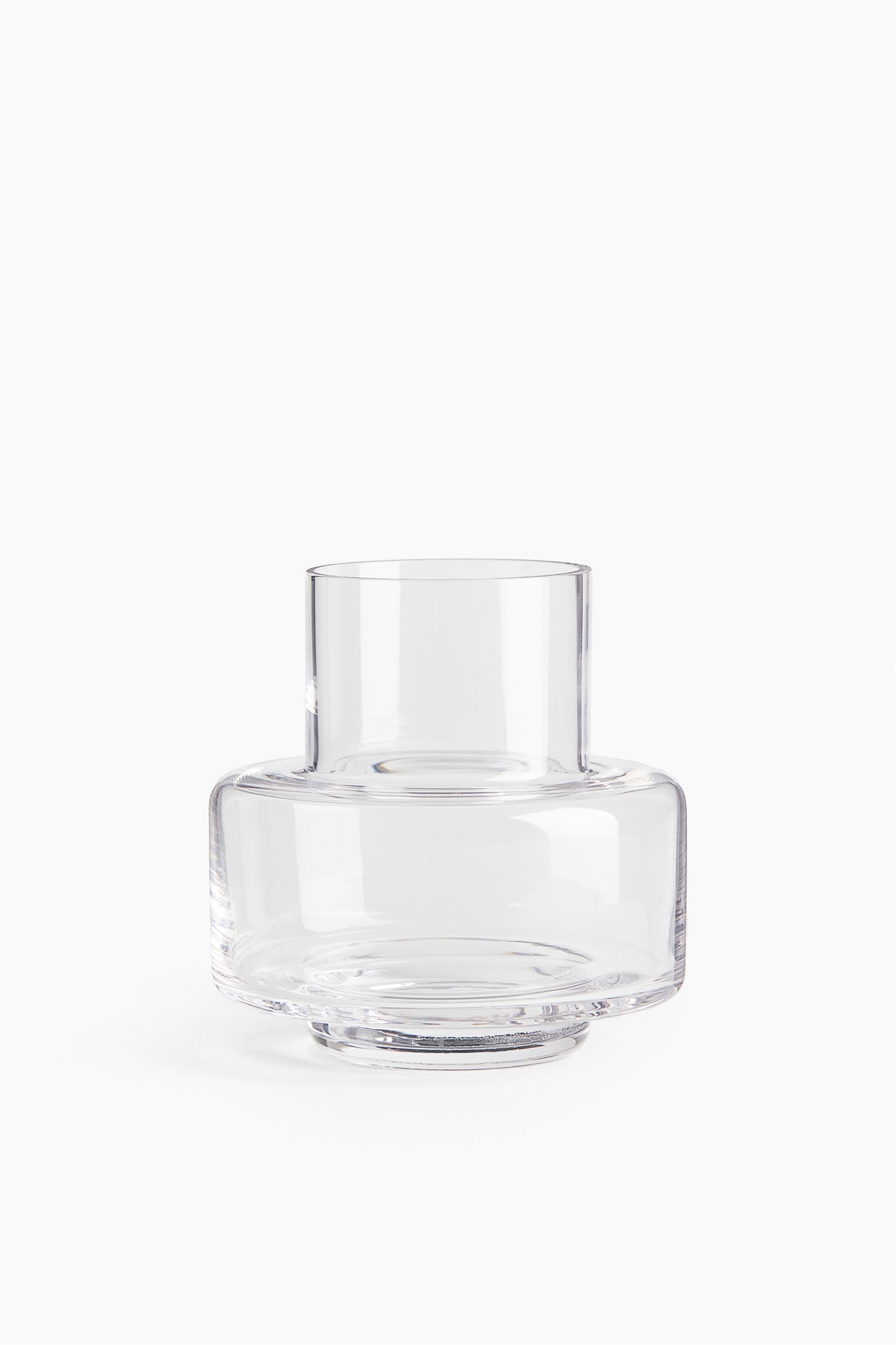Небольшая стеклянная ваза с геометрическим силуэтом и мягкими линиями для вневременной привлекательности.