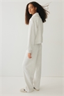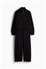 Комплект из топа и брюк из легкой толстовочной ткани с мягкой начесом внутри. Топ с высоким воротником, потайной застежкой-молнией спереди и втачными передними карманами. Ребристые манжеты и подол. Брюки с прямыми штанинами, эластичной резинкой на талии, незаметными боковыми карманами и фигурными боковыми швами.