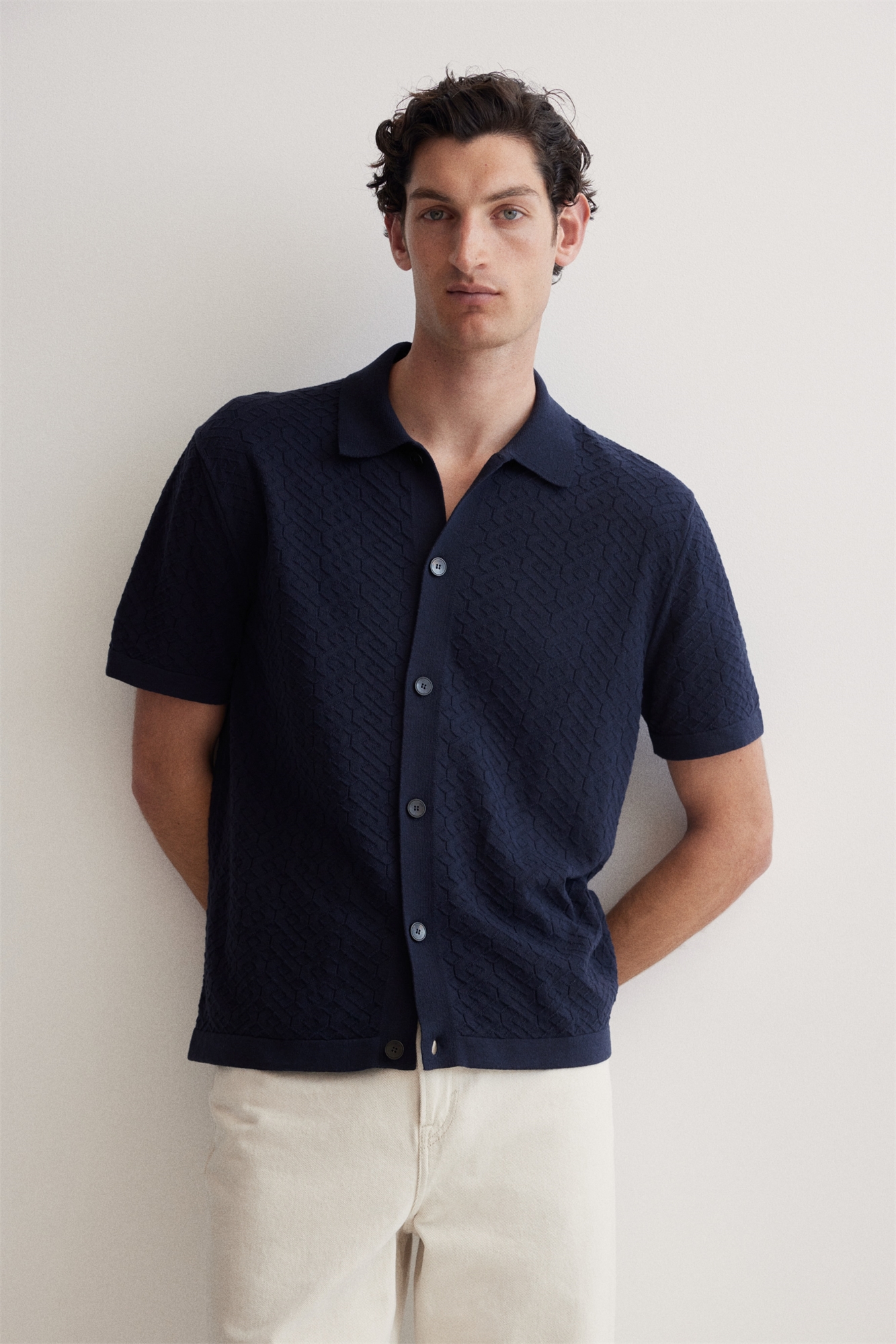 Рубашка с короткими рукавами из фактурного трикотажа из смеси хлопка, воротником, пуговицами спереди и прямым подолом. Регулярный крой для комфортной носки и классического силуэта.