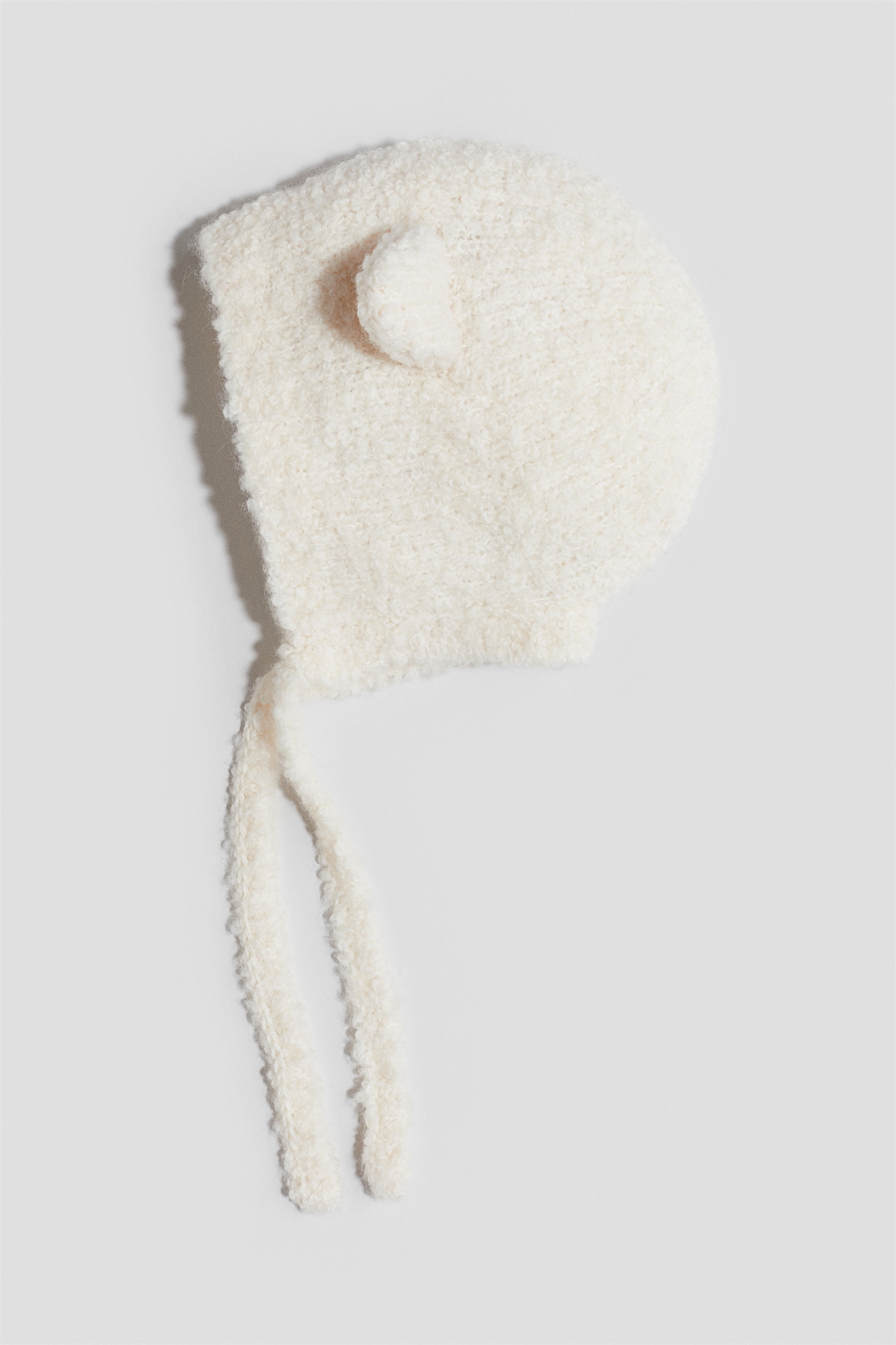 H&M Adorables. Чепчик из мягкого трикотажа букле из шерстяной смеси с аппликацией в виде ушей и завязками на подбородке. Коллекция H&M Adorables - это подборка удобных и качественных вещей, не теряющих актуальности.