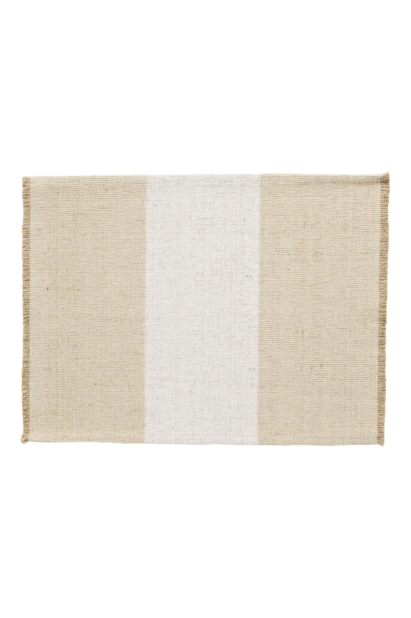 В упаковке 4 плетеных джутовых коврика с широкой полосой по центру. Размер каждого коврика 35x48 см.