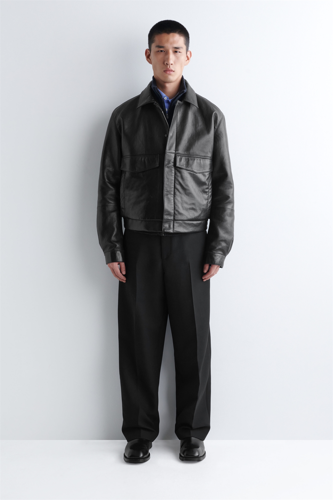 Классическая кожаная куртка является визитной карточкой мужского гардероба. Этот изысканный блузон изготовлен из премиальной бондированной кожи, которая становится еще более эластичной при носке и со временем покрывается характерной патиной. Модель имеет большие накладные карманы, потайную застежку и эластичный подол, который подчеркивает непринужденную форму.