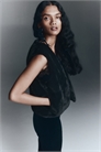 Жилетка из пушистой ткани с V-образным вырезом горловины и скрытой застежкой-крючком в верхней части. На подкладке.