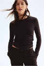Облегающий топ из мягкого трикотажа с круглым вырезом и длинными рукавами. Спереди и по бокам обработаны швы, создающие эффект драпировки.