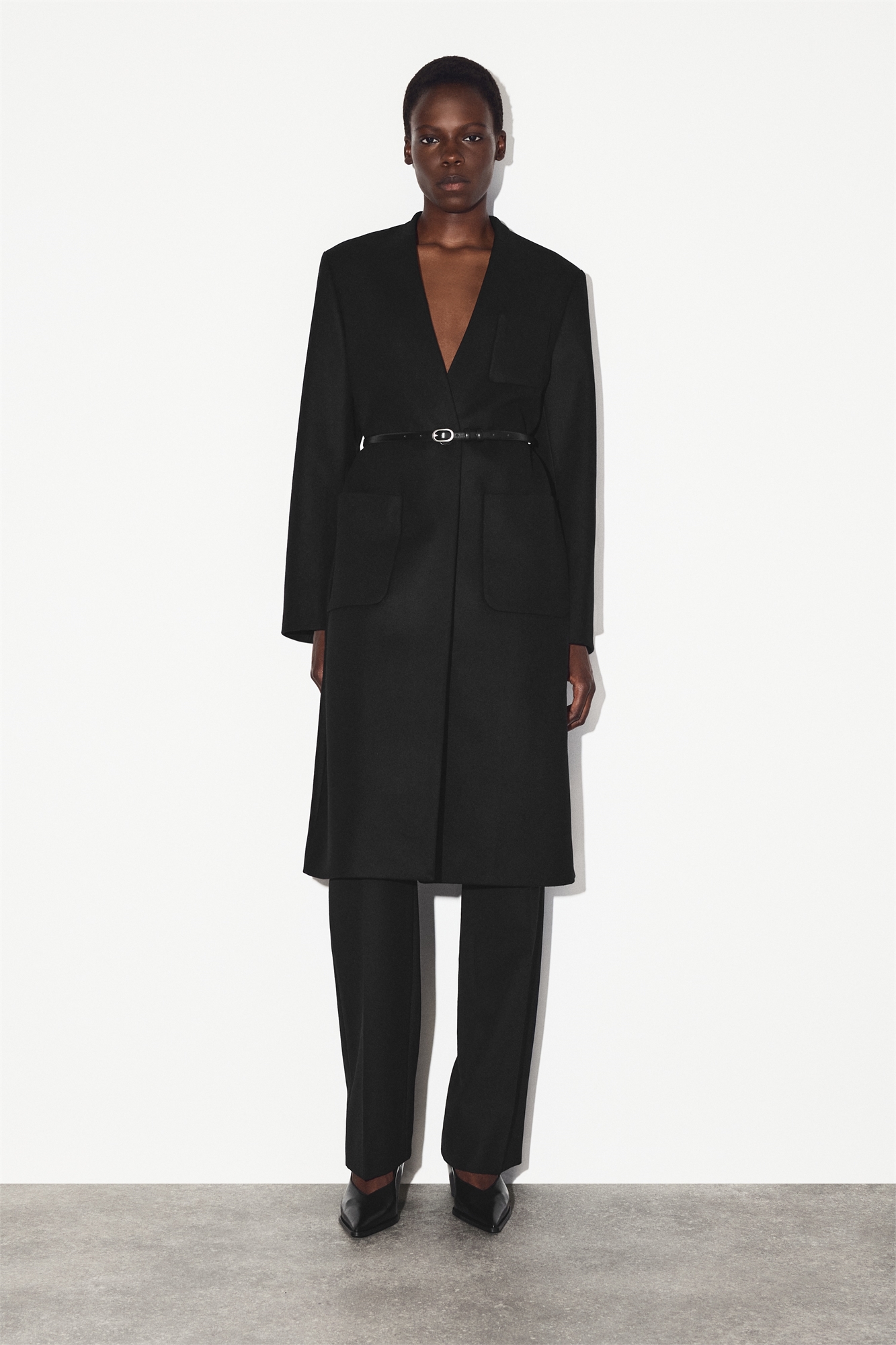 Коллекцию верхней одежды COS отличают первоклассные ткани, классические силуэты и современная изысканность. Это пальто без воротника изготовлено из шерсти Melton с добавлением кашемира для роскошного ощущения рук, имеет три кармана и вентиляционное отверстие сзади. Regular fitЗастежка на пуговицыПереработанная шерсть изготавливается из отходов прядильного производства, остатков пряжи, отходов производства и одежды после потребления – создавая новые вещи без отходов Материал: 70% переработанной шерсти, 25% переработанного полиамида (переработанного нейлона), 5% переработанного кашемира. Подкладка: 100% вискоза. Без учета отделки / Сухая чистка Длина по спинке для размера EU 36 составляет 113,5 см / Модель носит размер EU 36