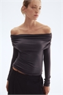 Облегающий топ без плеч из джерси-стрейч с длинными рукавами и широкой складкой в верхней части с собранными боковыми швами для легкого драпирующегося эффекта. Необработанные края манжет и подола.