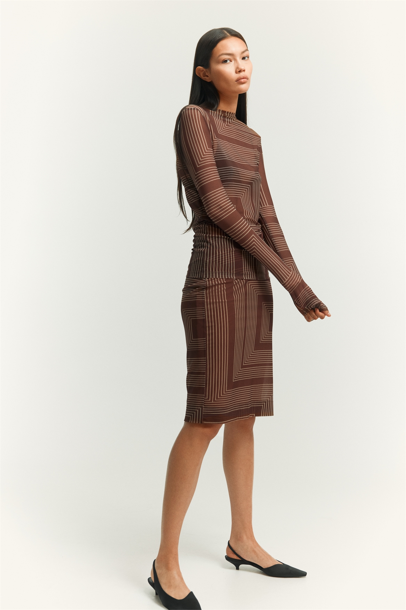 Облегающая юбка из сетки с высокой эластичной талией и прямым покроем. На подкладке.