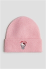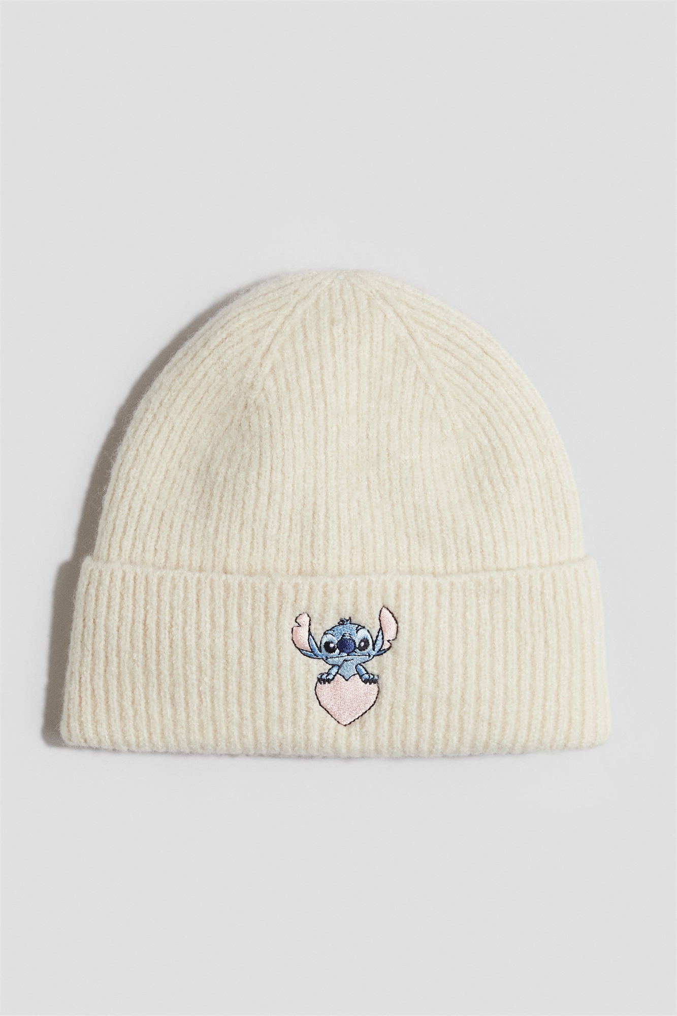 Бини из мягкого трикотажа в рубчик с вышитой аппликацией спереди и подворотом на подоле.