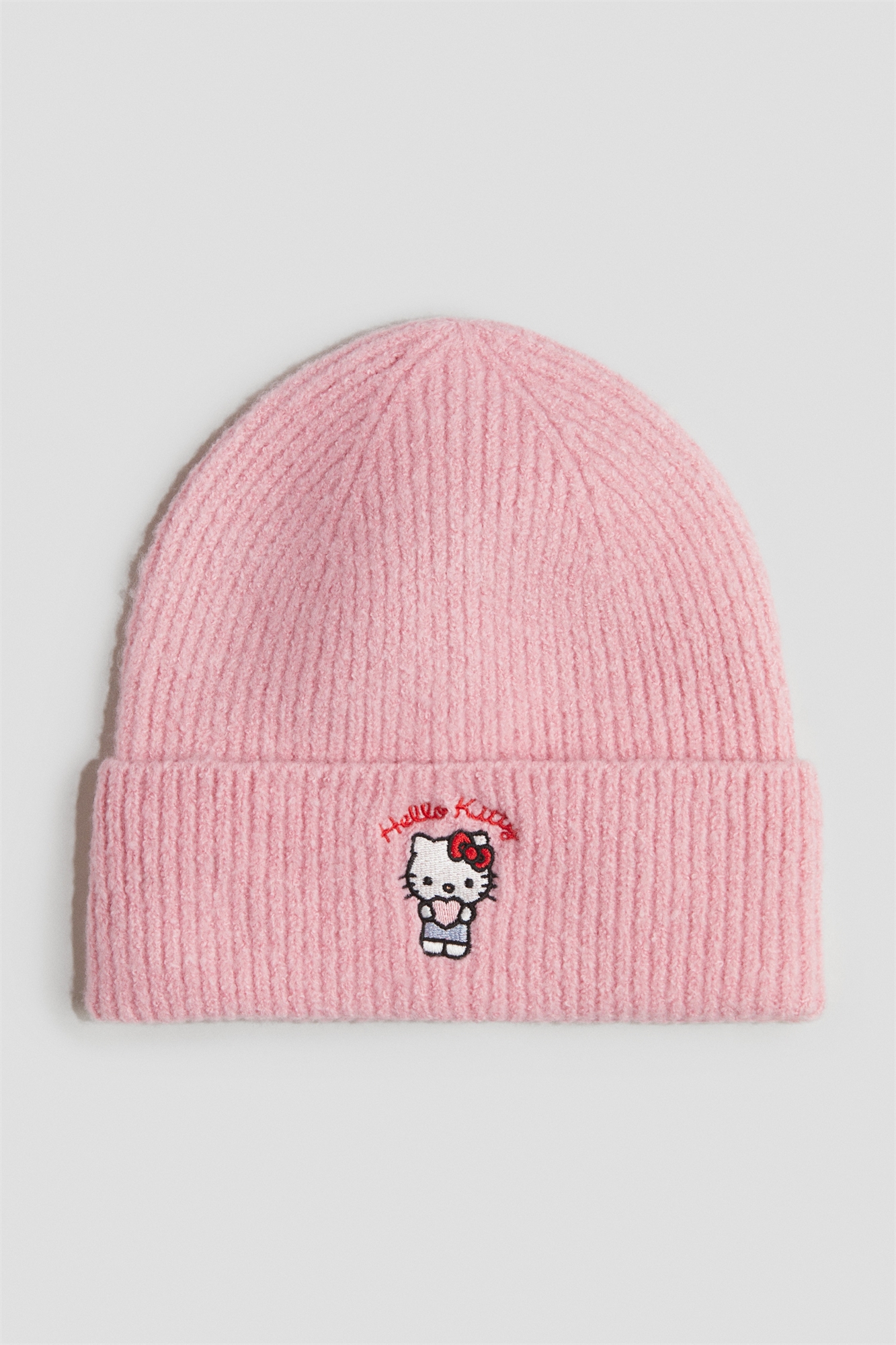 Бини из мягкого трикотажа в рубчик с вышитой аппликацией спереди и подворотом на подоле.