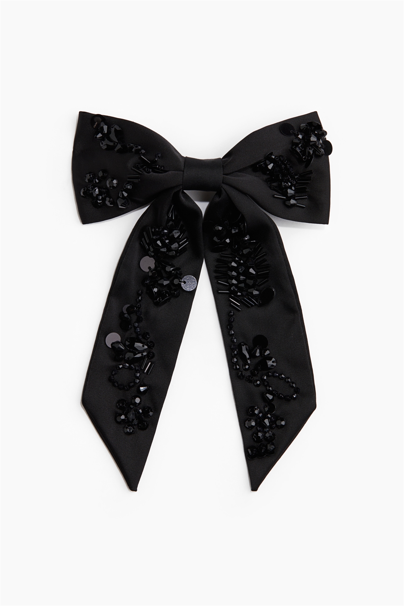 Металлическая заколка для волос с большим бантом из атласа с украшениями тон в тон.