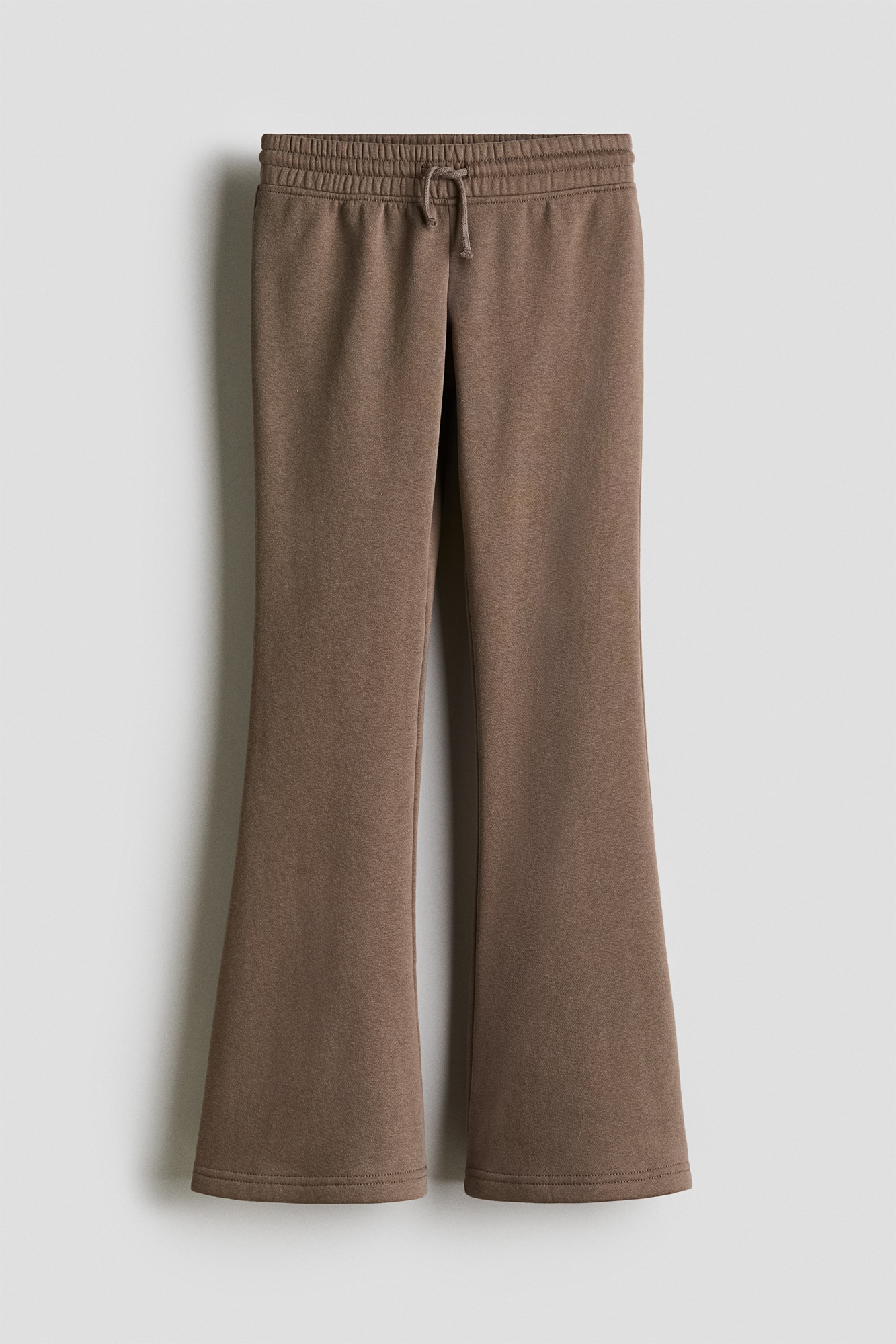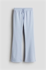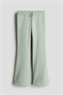 Джоггеры из толстоватой ткани с мягкой начесом внутри. Эластичная талия с завязками и расклешенные ноги.