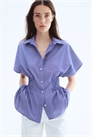 Рубашка из хлопкового поплина с воротником и пуговицами спереди. Рукава-бабочки и зауженная талия с широким швом для придания силуэту четкости.