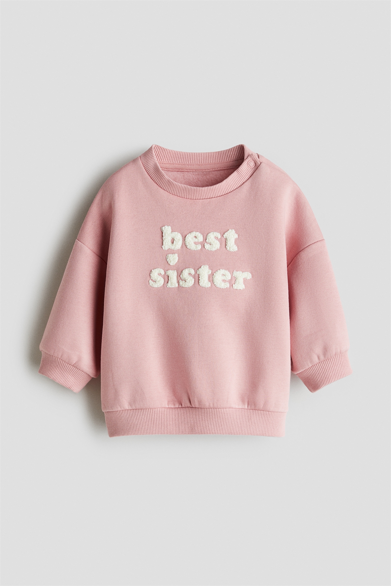 Топ из толстовочной ткани с мягкой начесом внутри и махровыми аппликациями. Круглый вырез в рубчик с застежками с одной стороны (кроме размеров 2-4Y), спущенные плечи, манжеты и подол в рубчик.