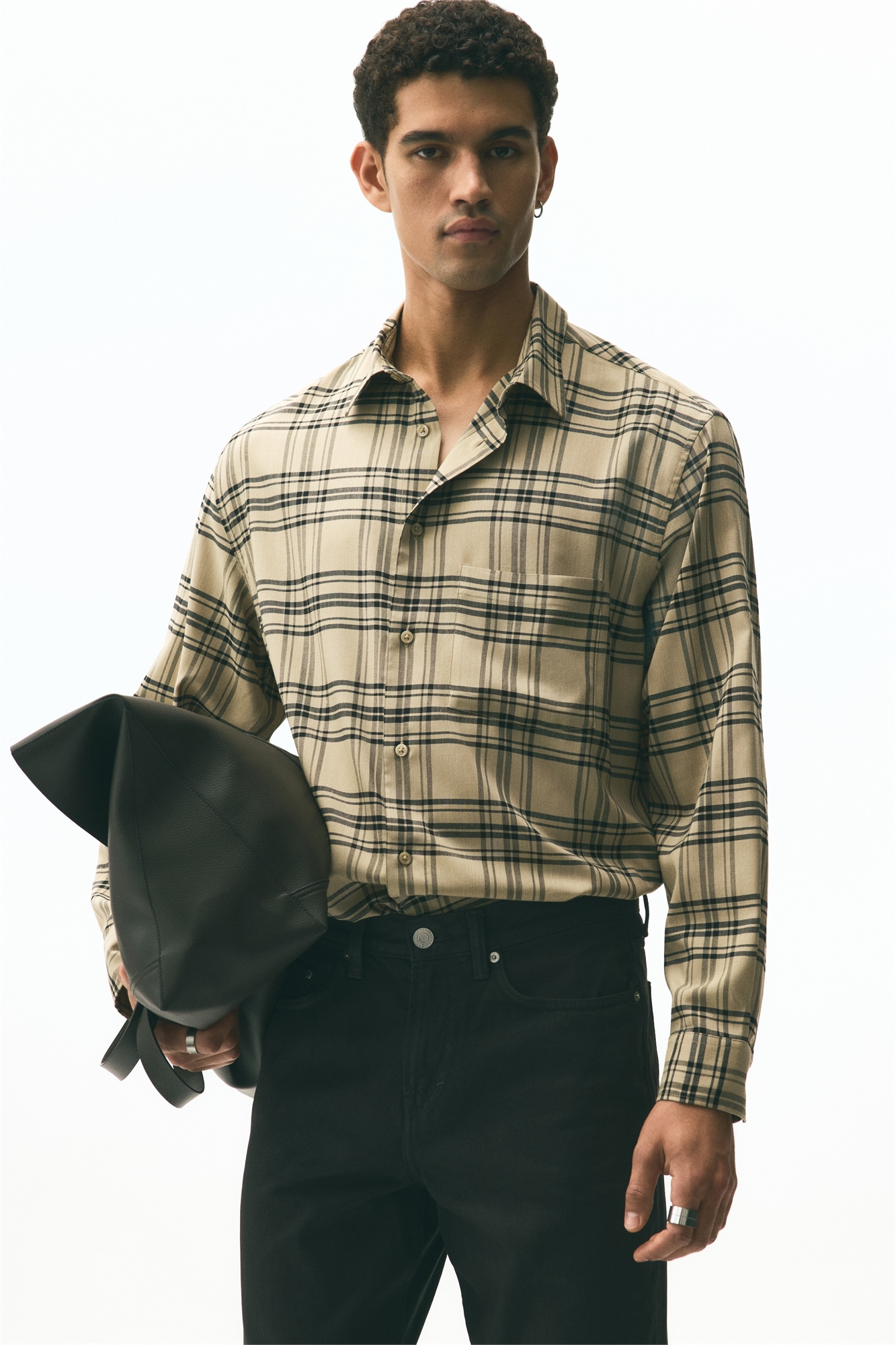 Рубашка из мягкого полотна с отложным воротником, французским передом, накладным нагрудным карманом, передом и длинными рукавами с манжетами на пуговицах. Аккуратный закругленный подол. Свободный крой для непринужденного, но не чрезмерного силуэта.