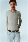 Футболка с длинными рукавами из эластичного ребристого хлопка с мягкой текстурой и швом "флэтлок" для тонкой проработки деталей. Вырез горловины и облегающий силуэт, который подходит как для одиночной носки, так и для многослойной.