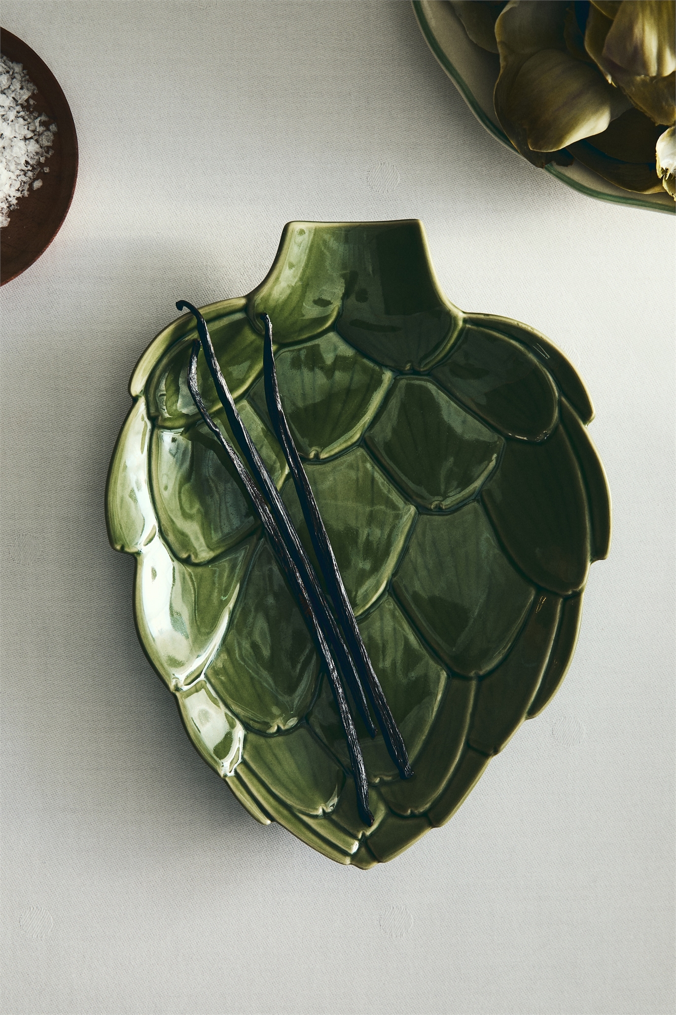 Фигурная сервировочная тарелка из керамики с глянцевой глазурью.