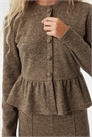 Приталенный кардиган из мягкого трикотажа в рубчик с круглым вырезом и закрытыми пуговицами спереди. Длинные рукава и расклешенный пеплум.