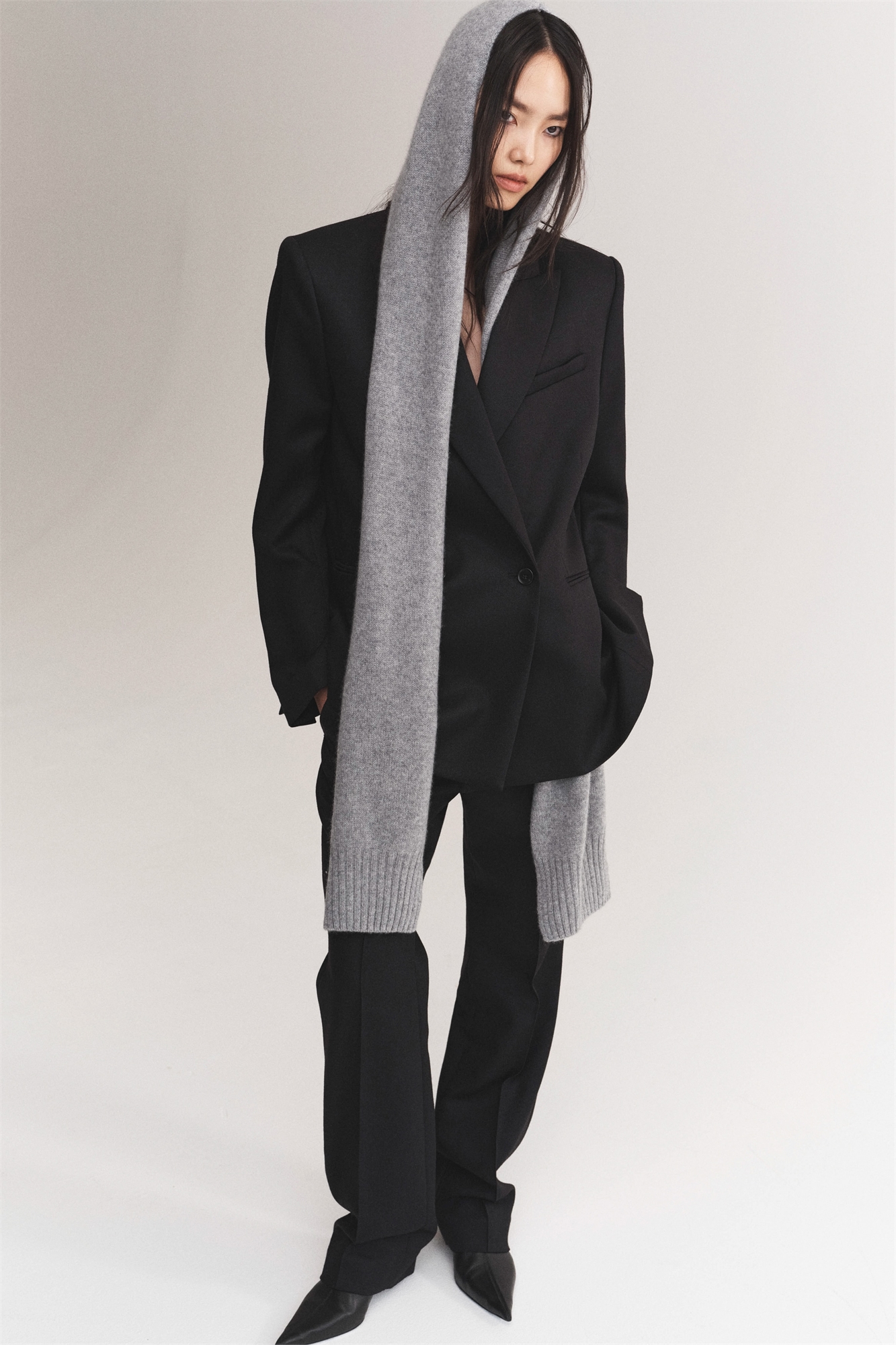 Вязаный шарф с капюшоном из мягкого кашемира с удлиненными панелями, которые плотно обхватывают шею. Ребрышки на концах.