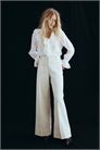 Брюки из хлопковой саржи с высокой талией, застежкой на молнию и пуговицу. Накладные передние и задние карманы и широкие штанины со складками спереди и сзади.