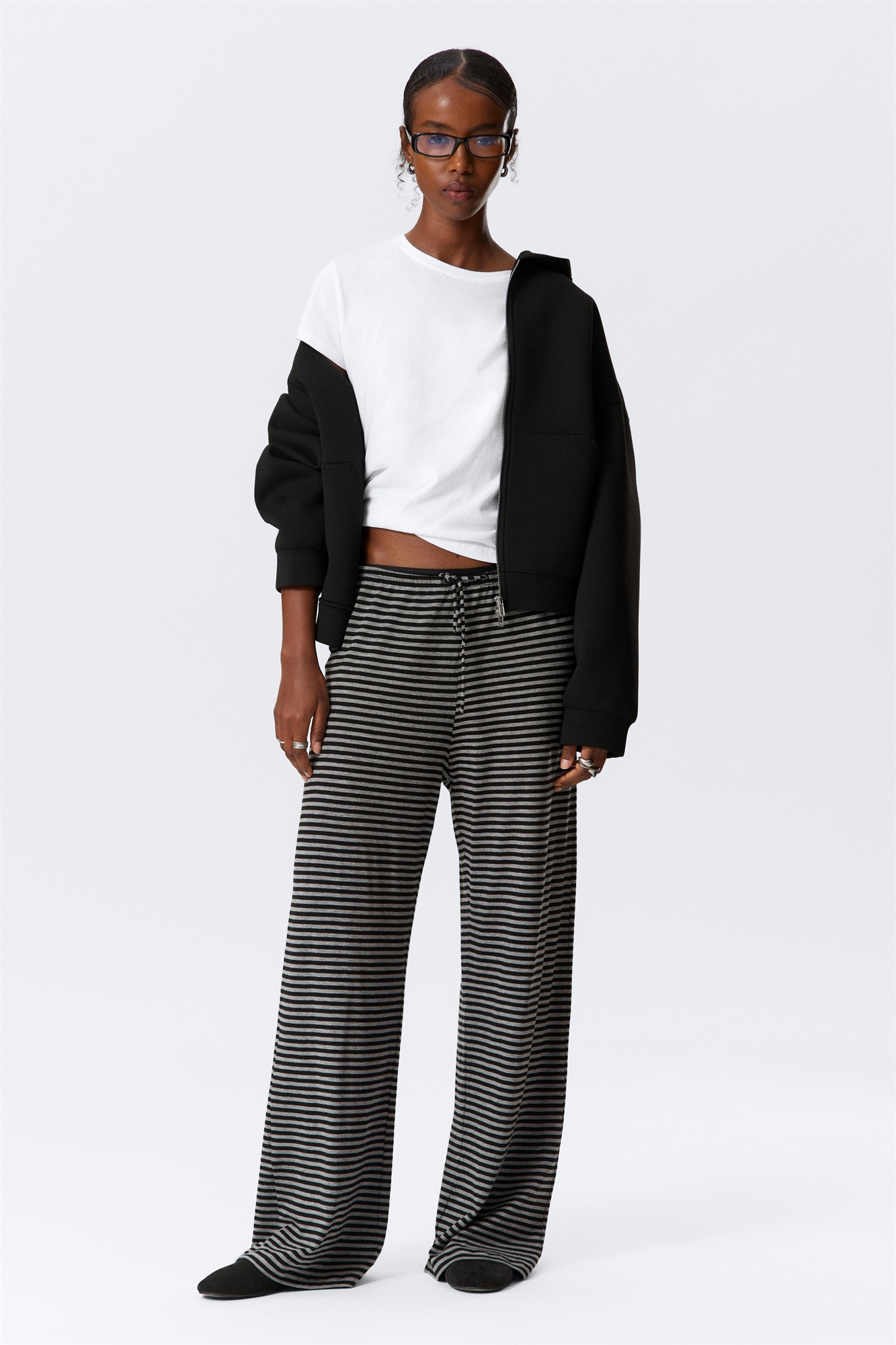 Брюки с широкими штанинами и непринужденным силуэтом. Изготовленные из мягкого и эластичного лиоцеллового джерси, они имеют эластичный пояс с регулируемым шнурком для удобной посадки.