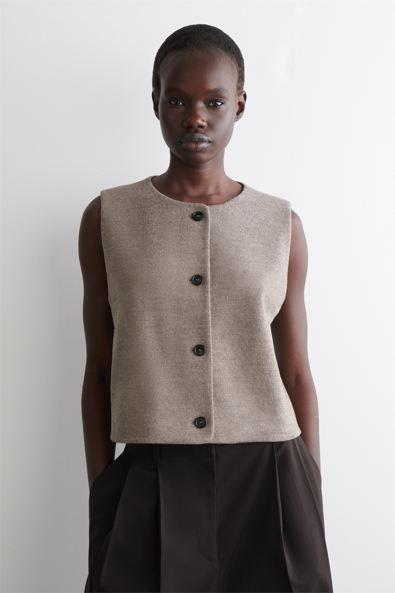 Коллекция одежды COS - это четкие силуэты и изысканные материалы. Эта современная жилетка сшита из смеси мериносовой шерсти, сваренной для тактильной привлекательности, с округлым вырезом и угловыми передними швами. Regular fitЗастежка на пуговицыЭто изделие содержит шерстяное волокно Responsible Wool Standard TE-00047206 (RWS) с ферм, сертифицированных по требованиям к благополучию животных и управлению землей Оболочка: 50% мериносовой шерсти, 32% хлопка, 18% переработанного полиэстера. Подкладка: 100% хлопок. Без учета отделки / Сухая чистка Длина по спинке для размера S составляет 47,8 см / Модель носит размер S