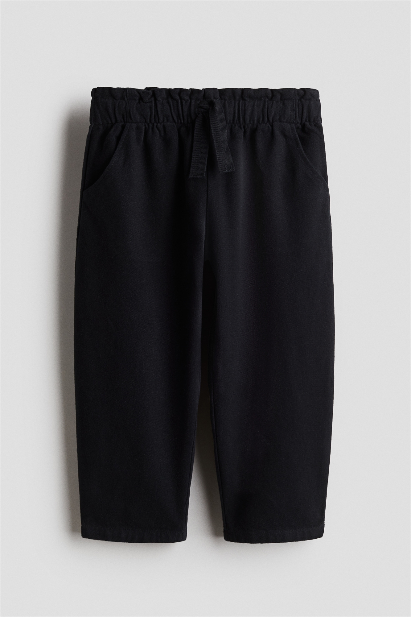 Брюки из мягкого хлопкового полотна со свободным кроем. Талия из бумажного мешка с завязками, диагональные передние карманы и бочкообразные ноги.