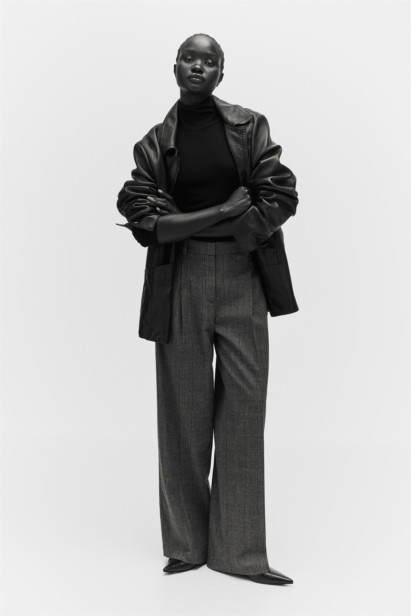 Приталенные брюки из тканого материала с ширинкой на молнии и потайной застежкой на пуговицу и крючок. Диагональные боковые карманы, втачные задние карманы и широкие ноги со складками спереди и складками спереди и сзади.
